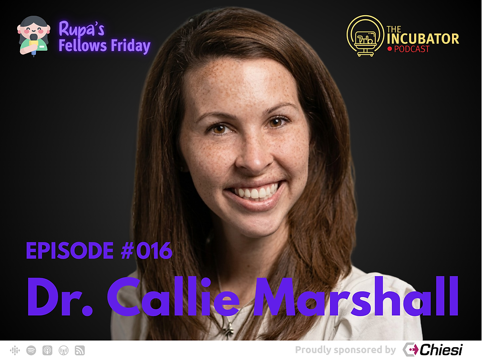 [00:00] Srirupa: Hi everyone, welcome to another fantastic episode of Rupa's Fellows Friday. I have with me Dr. Callie Marshall from Washington University, who is currently a third-year neonatology fellow. Callie did her medical school at the University of Texas San Antonio, then went on to do her residency and subsequently her fellowship in neonatology at Washington University. I'm very excited to hear all about the work she's been doing in fellowship. Welcome, Callie. How's your day going so far?